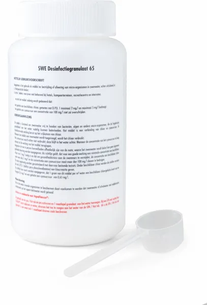 AquaFinesse chloor granulaat is chloor in poedervorm voor je spa. Chloor granulaat zorgt voor een snelle desinfectie van het water in je spa en is ideaal te gebruiken bij het opstarten van je spa in het voorjaar. Daar waar chloor tabletten dikker zijn en het chloor dus geleidelijk afgeven aan het water, lost chloor granulaat (chloor in poedervorm) veel sneller op in het water. Hierdoor is chloor granulaat uitermate geschikt om het chloorgehalte in je spa snel omhoog te brengen!