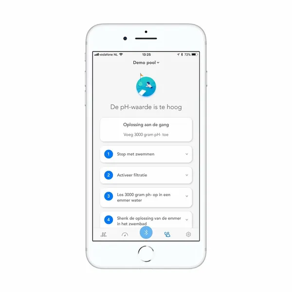 Het is niet voor niets dat de Astral BlueConnect Go een slimme watertester wordt genoemd. Deze watertester is door middel van de optionele WiFi connector altijd verbonden met het internet. Let op: deze WiFi connector wordt niet standaard meegeleverd. Download de BlueRiiot BlueConnect app en je bekijkt alle huidige waterwaarden vanuit je luie stoel! De app stuurt pushmeldingen wanneer bepaalde waarden niet meer goed zijn. Lees meteen af wat en hoeveel je toe moet voegen en je zwembadwater is in een mum van tijd weer op peil!