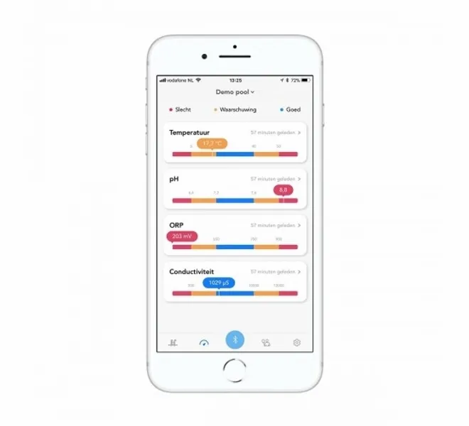 De Astral BlueConnect Plus Zout verbind je gratis met Sigfox. Dit is een wereldwijd WiFi netwerk speciaal gemaakt om apparaten makkelijk aan te sluiten op internet. Download vervolgens de BlueRiiot BlueConnect app en verbind de tester ermee. Vanaf nu bekijk je alle huidige waterwaarden vanuit je luie stoel! De app stuurt pushmeldingen wanneer bepaalde waarden niet meer goed zijn. Lees meteen af wat en hoeveel je toe moet voegen en je zwembadwater is in een mum van tijd weer op peil!