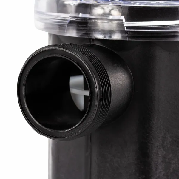 De Astral Sena 25463 heeft een doorzichtige deksel. Zo heb je in één oogopslag gezien of de filtermand vol zit en geleegd moet worden. Iets wat overigens relatief minder vaak voorkomt. De filtermand is namelijk vrij groot. Daarnaast is de pomp voorzien van roestvrij stalen bouten en moeren, en is deze zoutwaterbestendig.
